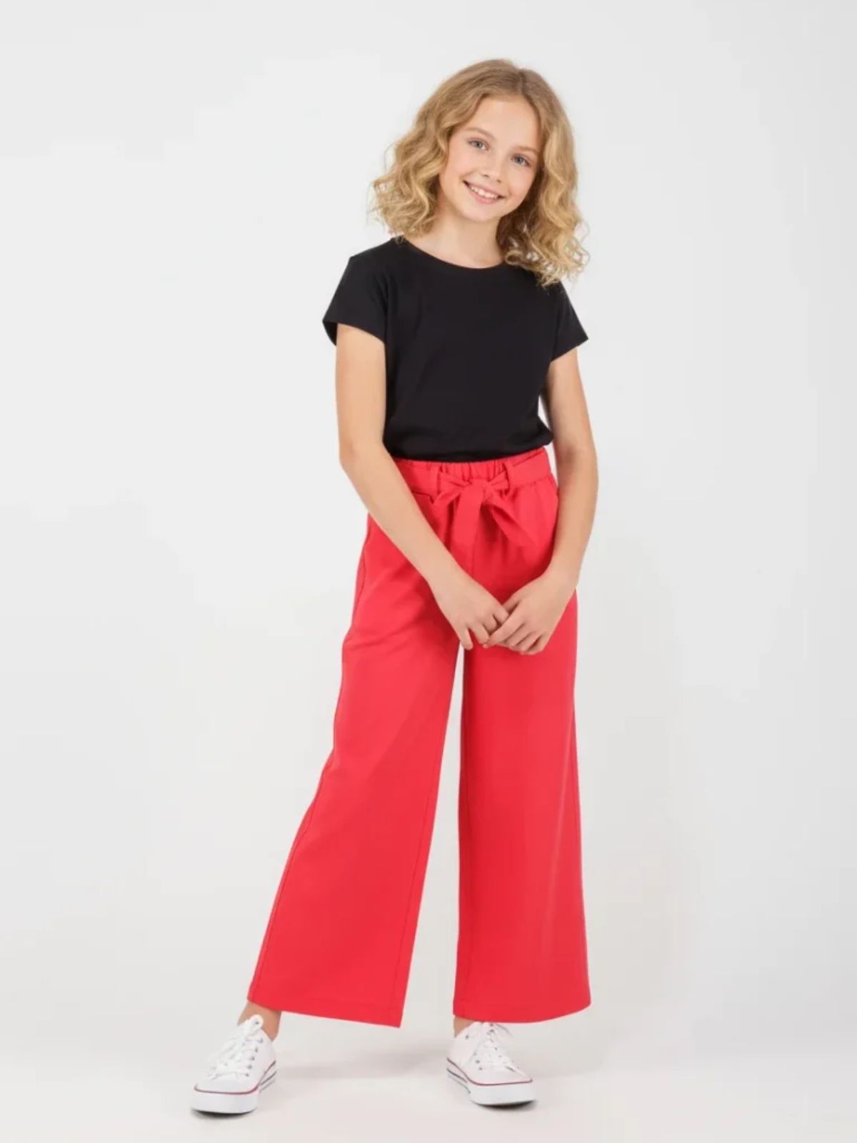 Παντελόνα βαμβακερή μονόχρωμη με ζώνη κόκκινο