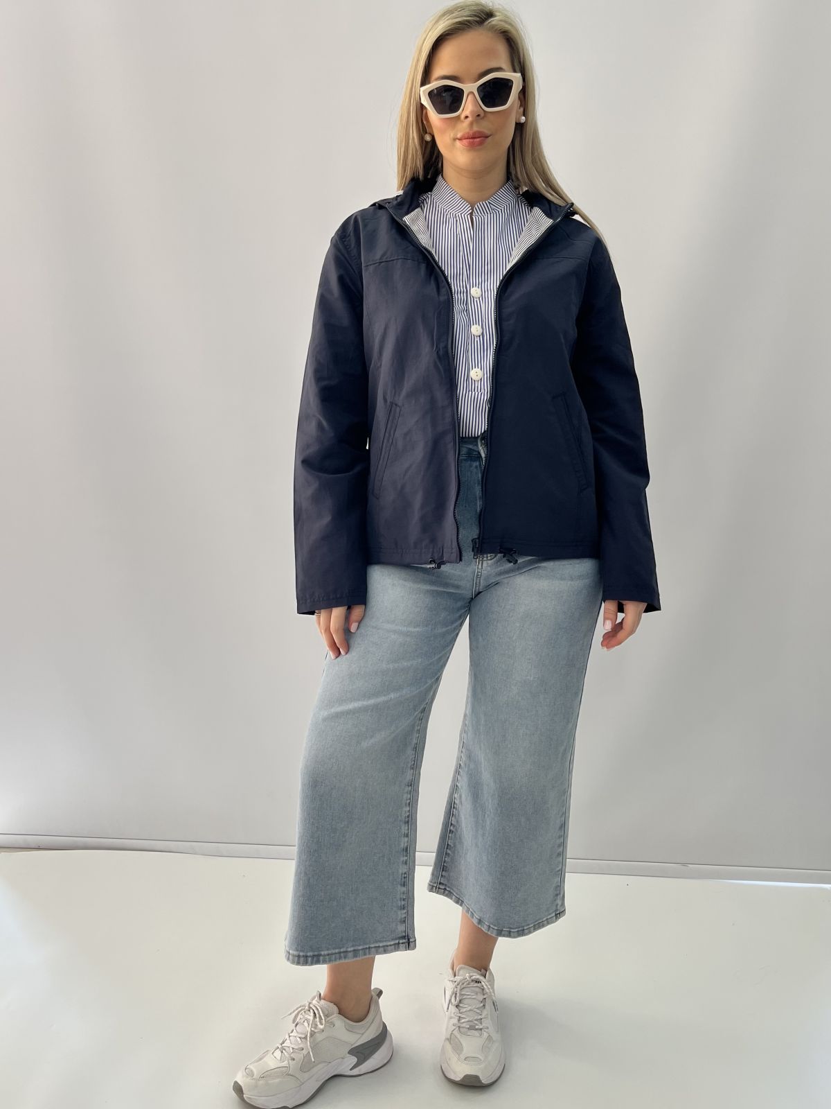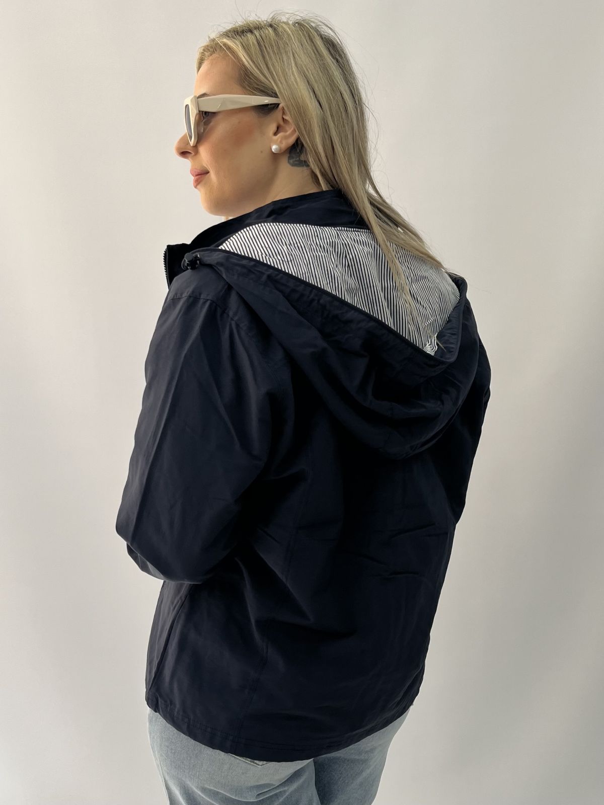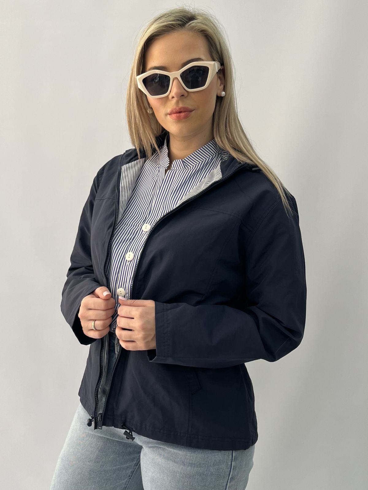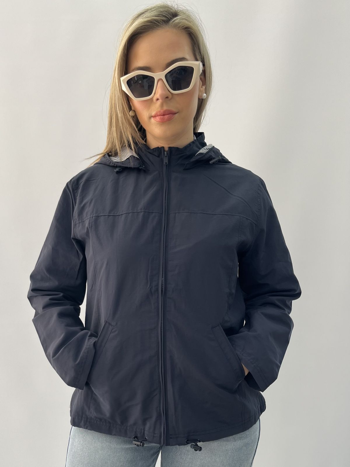 Μπουφάν αδιάβροχο κοντό με κουκούλα και τσέπες μπλε