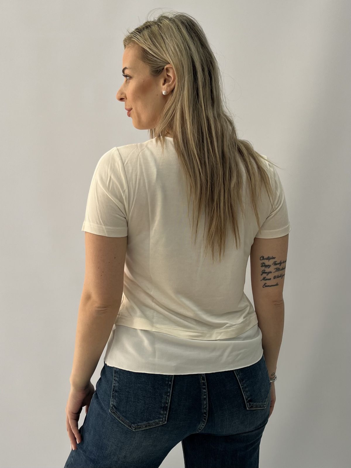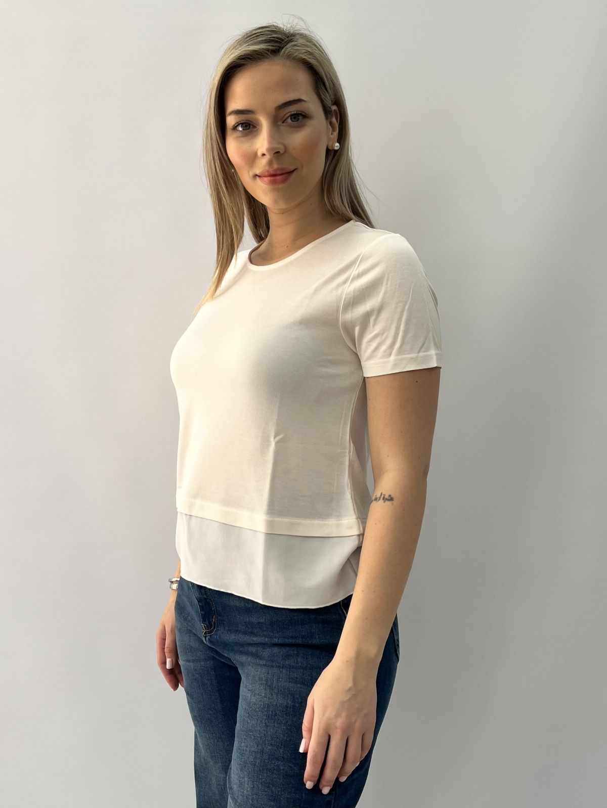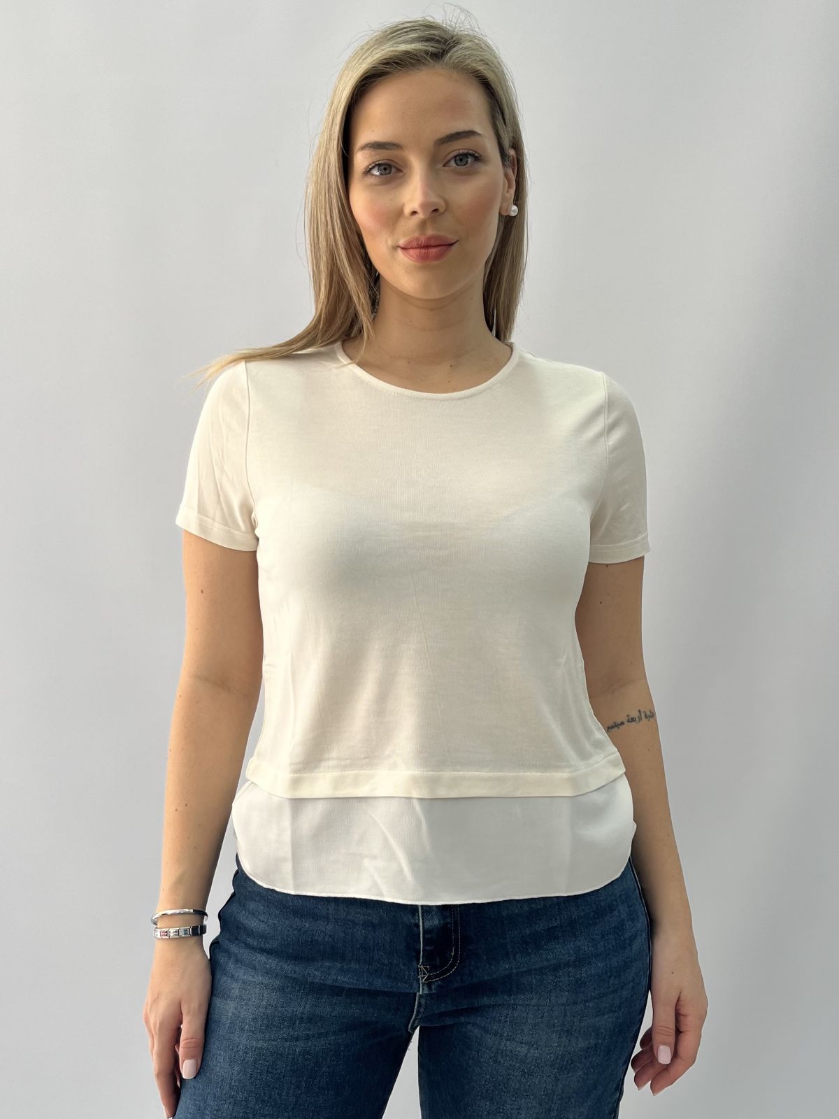 μπλούζα κοντομάνικη με διπλό τελείωμα εκρού
