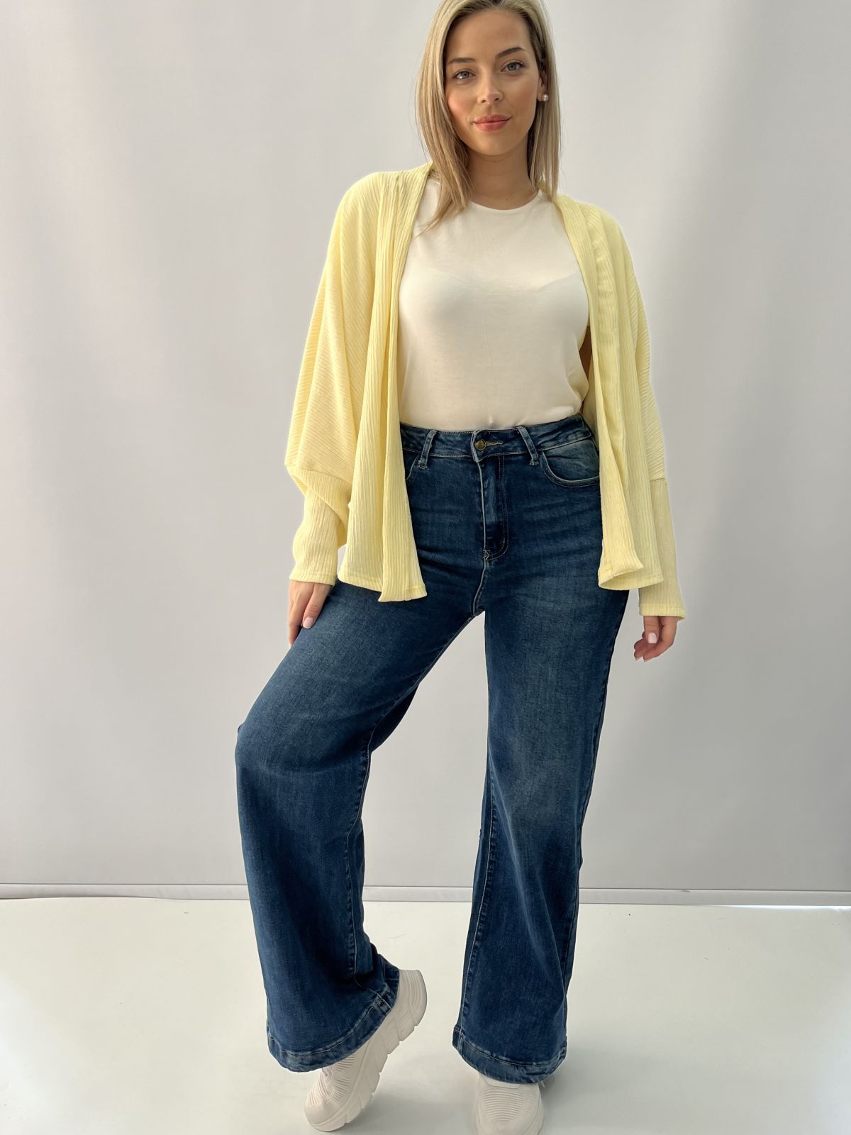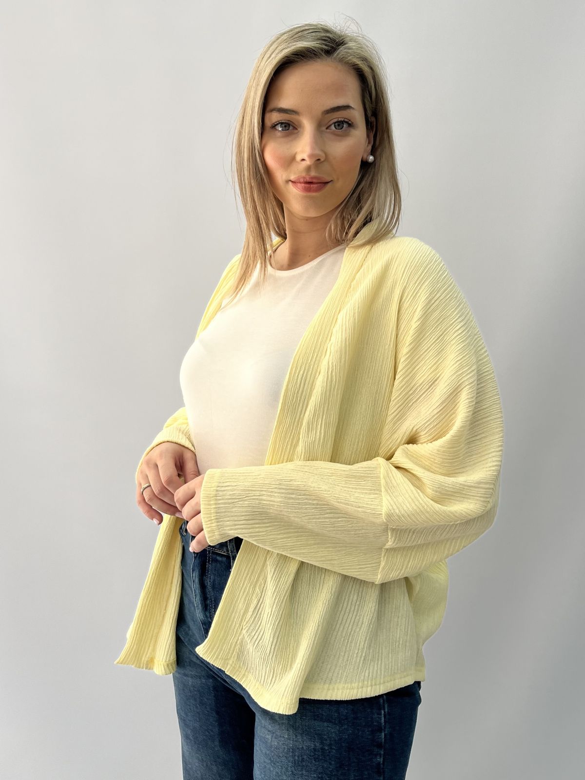 Ζακέτα με φάσα και φαρδύ μανίκι κίτρινο