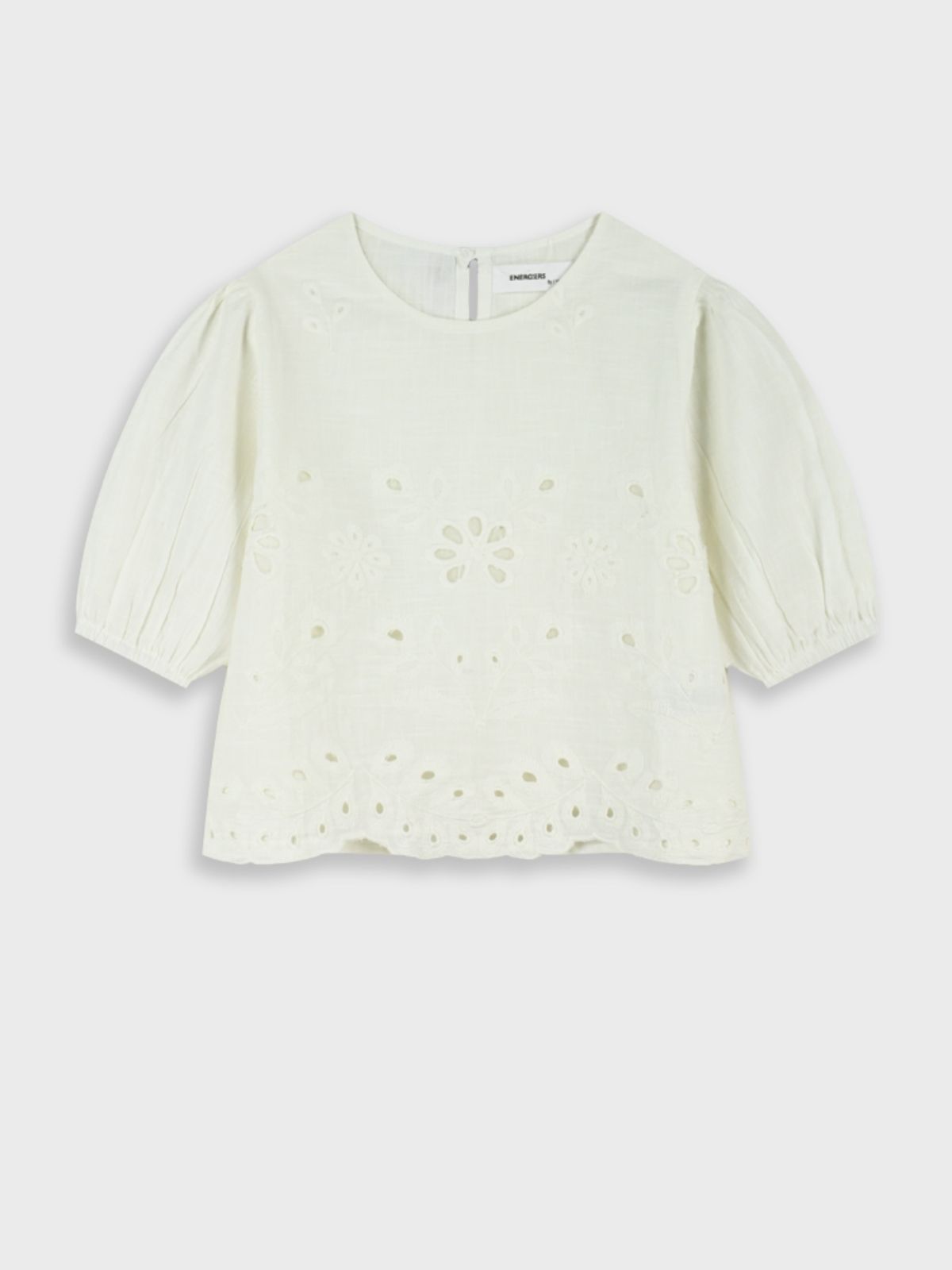 Πουκαμίσα κοντομάνικη με κοφτό κέντημα λευκό