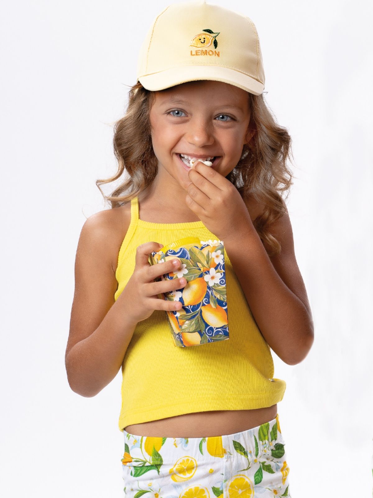 Σετ ριπ τοπ και ποδηλατικό κολάν print lemon's life κίτρινο