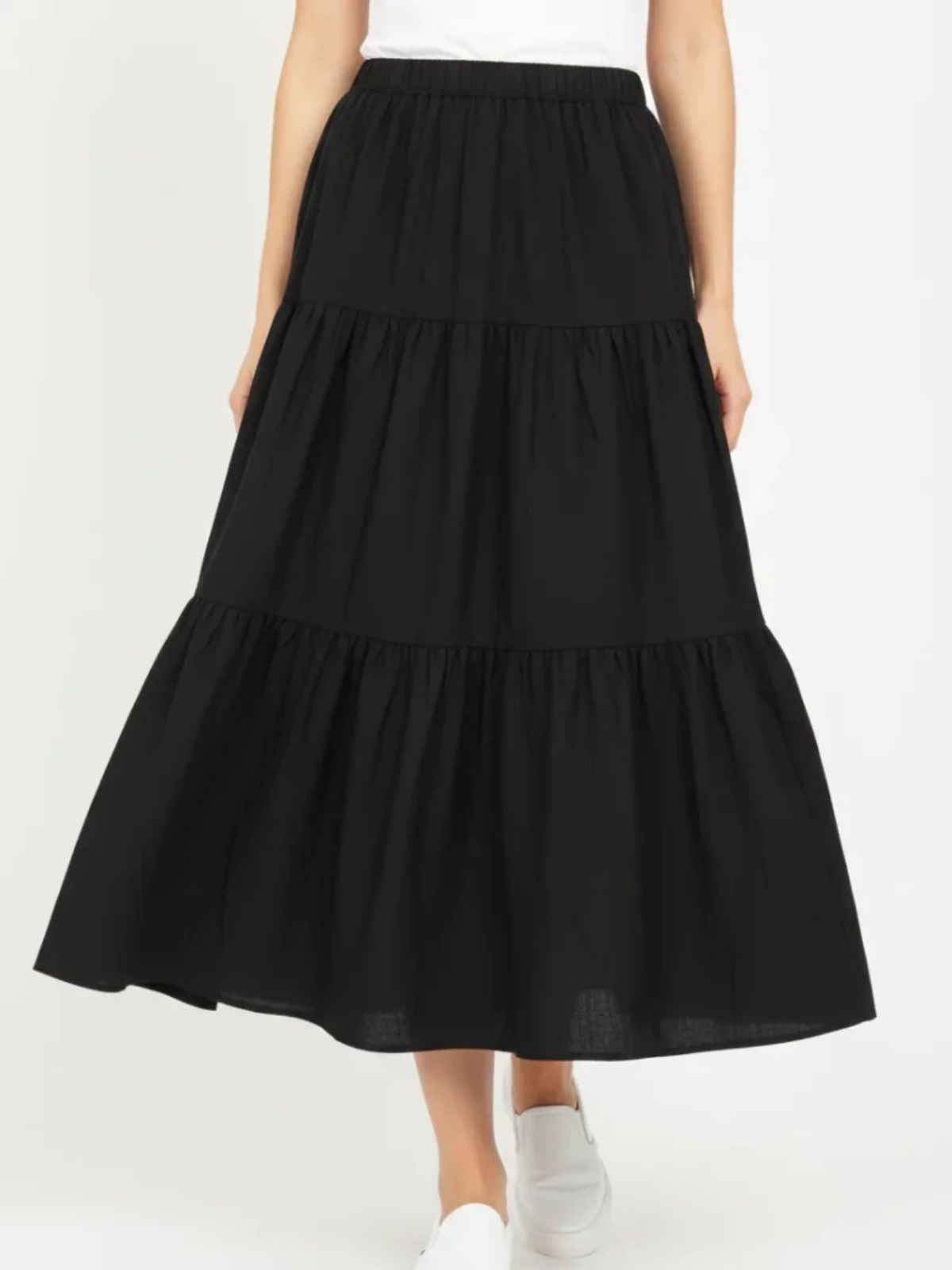 Φούστα μακριά μονόχρωμη με λάστιχο μαύρο